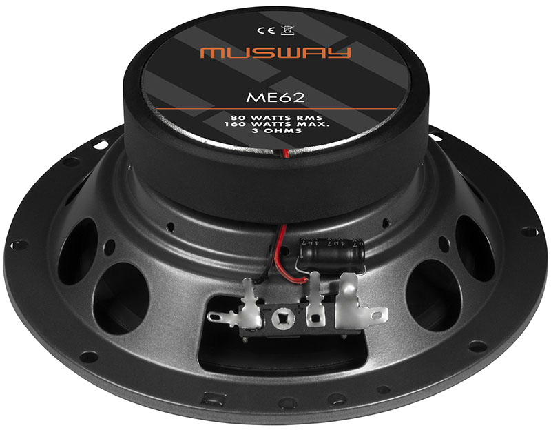 Gli altoparlanti ME sono i modelli “entry-level” di Speaker MUSWAY. Anche questi sono già dotati di potenti magneti, che consentono, tra le altre cose, un'elevata capacità di carico fino a 200 watt di potenza musicale. Membrana in polipropilene con sospensioni in gomma garantiscono bassi profondi e potenti e una durata molto lunga. Per una dispersione ottimale, i woofer ME6.2C, ME5.2C e ME6.2W sono dotati di ogive di rifasamento. I tweeter al neodimio con cupola in seta da 25 mm non solo hanno eccellenti caratteristiche sonore, ma sono anche estremamente flessibile perché l'anello esterno in plastica è rimovibile e quindi il diametro è di soli 43,5 mm - adatto per il montaggio sul triangolo dello specchietto o sul montante anteriore. I crossover in linea, separati per i segnali degli alti e dei bassi, offrono una installazione facile e occupano pochissimo spazio.